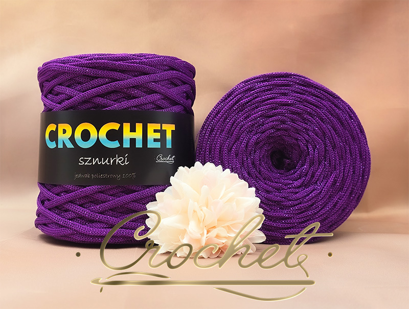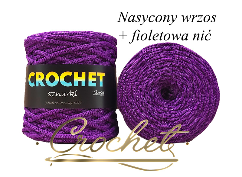 SZNUREK POLIESTROWY PŁASKI LUREX 5mm CROCHET – NASYCONY WRZOS + FIOLETOWA NIĆ 100mb