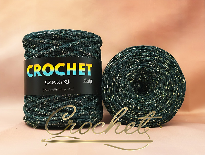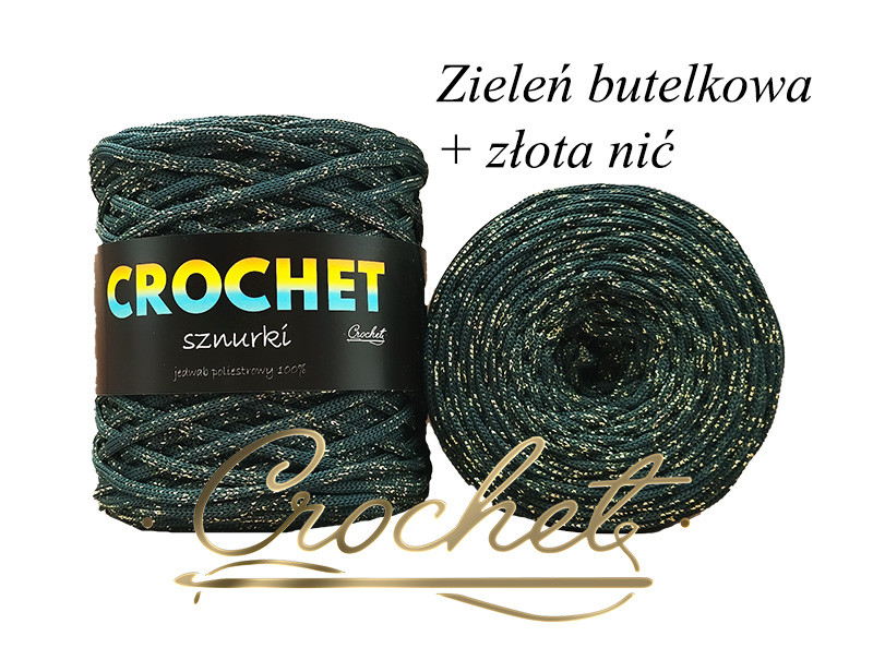 SZNUREK POLIESTROWY PŁASKI LUREX 5mm CROCHET – ZIELEŃ BUTELKOWA + ZŁOTA NIĆ 50mb