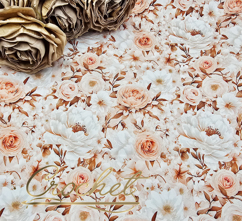 TKANINA NA PODSZEWKĘ OXFORD – BEŻOWE KWIATY